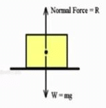 Consider a block of mass m placed on a horizontal surface. The weight of the block is mg, which is balanced by normal force N ( reaction of the horizontal surface).